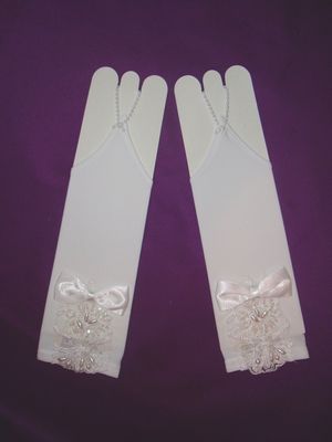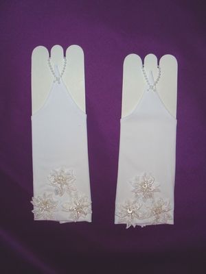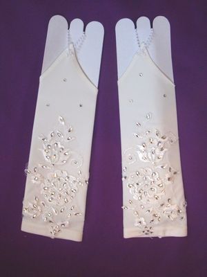 Существует большое разнообразие перчаток, различаются по длине, материалу изготовления, цвету, отсутствия или наличия пальцев. Выбор происходит в зависимости от платья невесты.