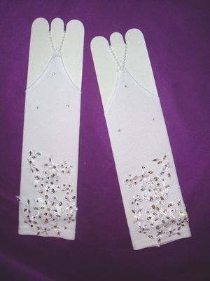 Если в платье более открыты плечи, то соответственно перчатки должны быть длиннее и наоборот если плечи закрыты, то короче. Шикарно на невесте смотрятся - перчатки с пальчика, так называемые "оперными".
