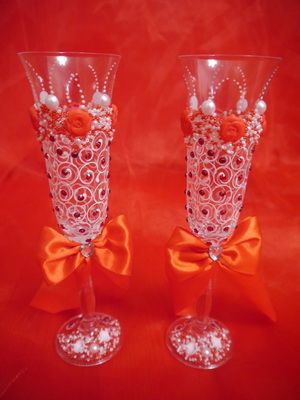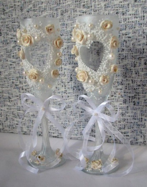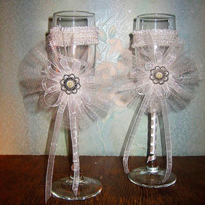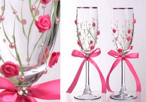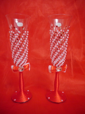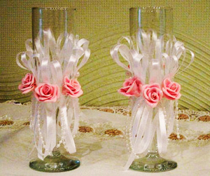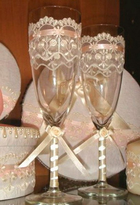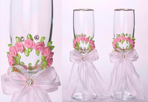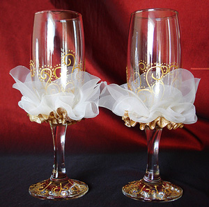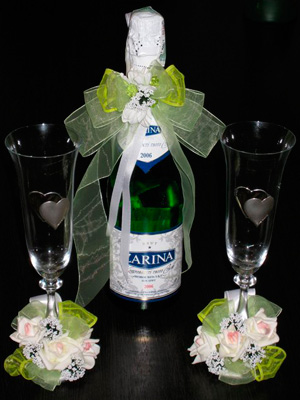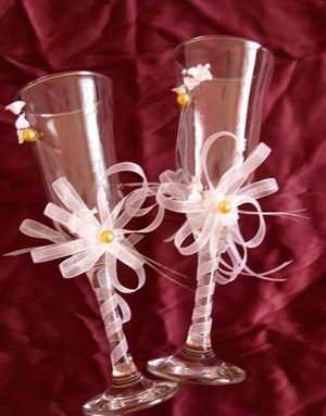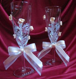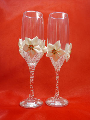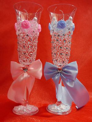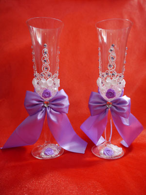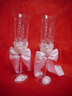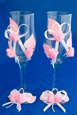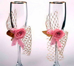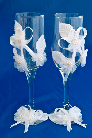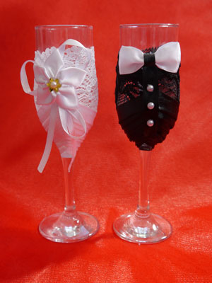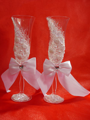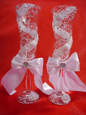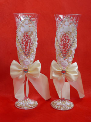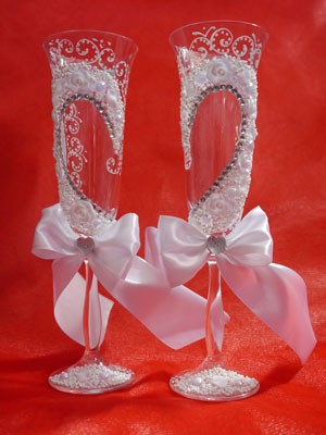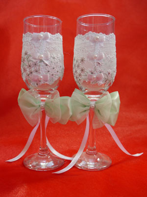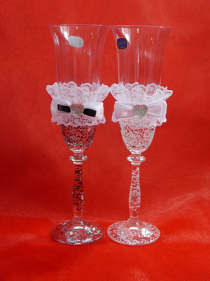На каждой свадьбе в Республике Беларусь присутствуют спиртные напитки и для того чтобы их употреблять люди изобрели рюмки, стаканы и т.д. Но чтобы красиво это делать без бокалов не обойтись. Свадебный салон Ангел в Барановичах предлагает свадебные бокалы для невесты и жениха. Наши дизайнеры своими руками украшают данные изделия. Украшение свадебных бокалов дело очень сложное и трудоемкое. В результате получаются очень красивые и привлекательные бокалы для молодожен. Купить, приобрести наши изделия (свадебные бокалы) можете у нас в свадебном салоне г.Барановичи, по ул.Чернышевского, также есть возможность заказать бокалы на свадьбу по индивидуальному эскизу. С ассортиментом можете ознакомиться в галерее фото свадебных бокалов.